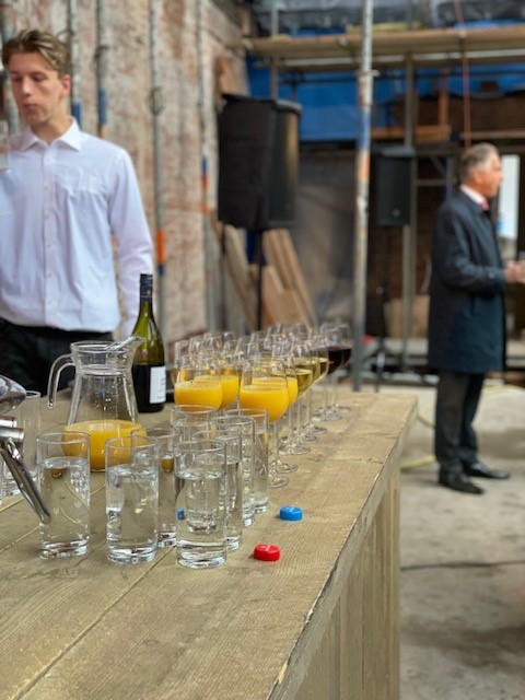 Na veel nuttige informatie over de bouw van het Fahrenheitcomplex, werden de leden terug op de binnenplaats van het bouwproject opgevangen door onze vaste cateraar Hageman, die ons weer fantastisch heeft bediend met lekkere hapjes en drankjes. Gelukkig was het die dag droog en niet koud op de bouwplaats!